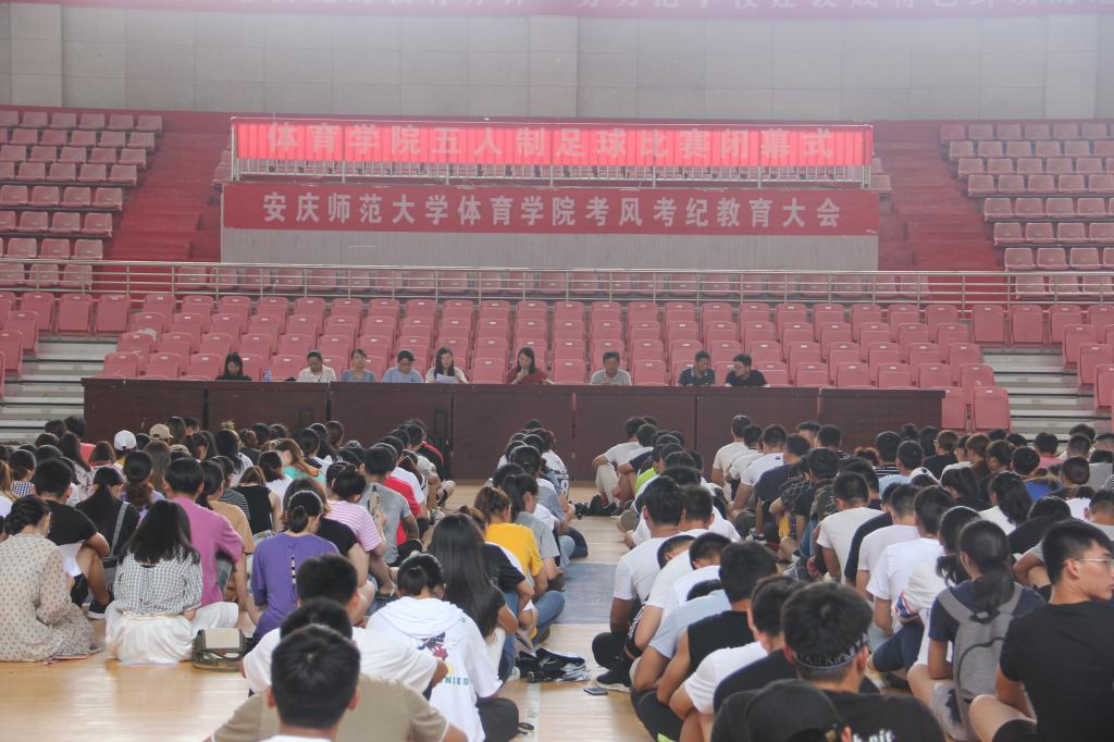 会上,王粉梅老师宣读了关于考风考纪的《安庆师范大学学生违纪处分管理规定》和本学期因旷课而给予学院通报批评的决定。汪云星老师宣读了《诚信考试倡议书》,号召广大同学端正考试态度,正确认识考试意义,认真复习,积极备考,从我做起,文明应考。鲁雷老师就暑期安全问题做了详细的解读和温馨提示。2016级体育教育专业的白相如同学作为学生代表发言。
