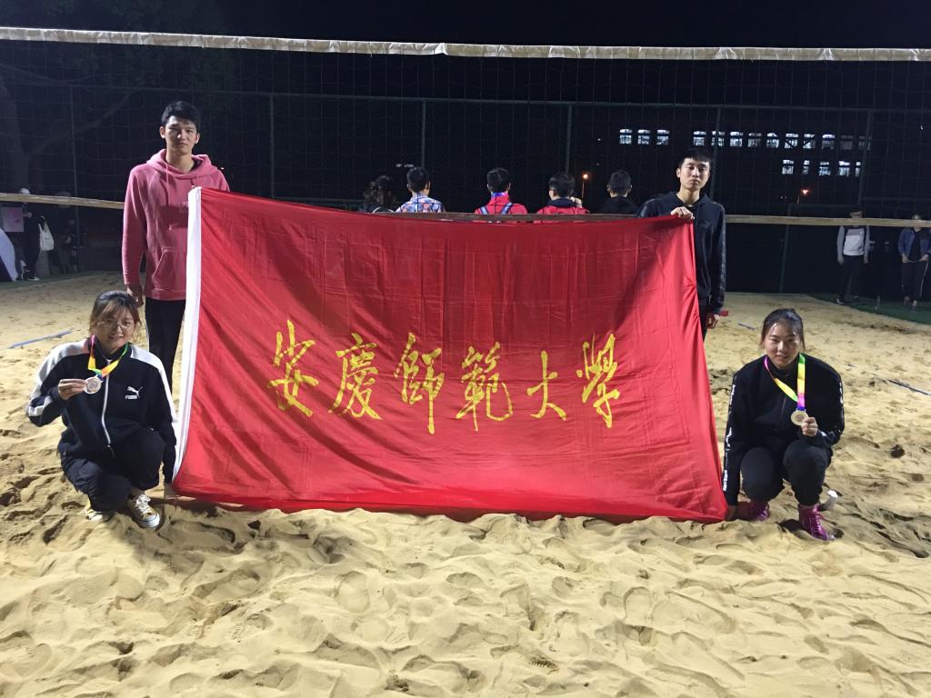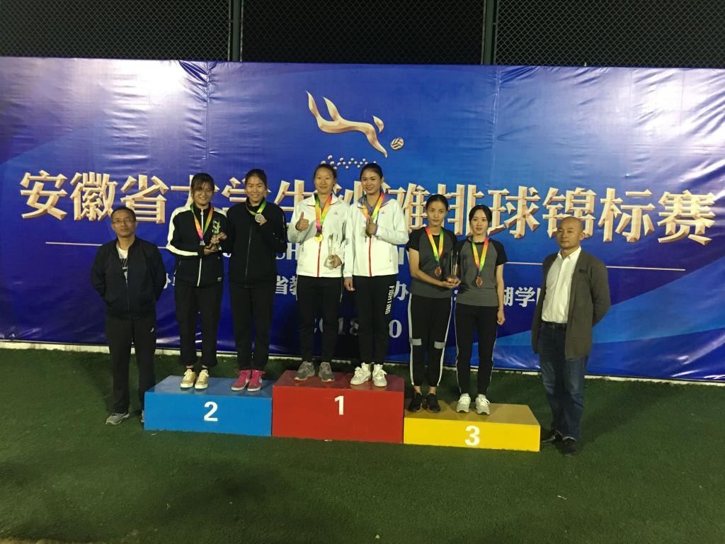 10月8日—12日,由安徽省教育厅主办的2018年安徽省大学生沙滩排球锦标赛在巢湖学院举行。我校沙滩排球队在邓龙老师带领下,分别参加了体育专业男子丙组和女子丙组两项比赛,最终荣获女子丙组一等奖(第二名)、男子丙组二等奖(第四名)以及 “优秀组织奖”和男子丙组“体育道德风尚奖”。