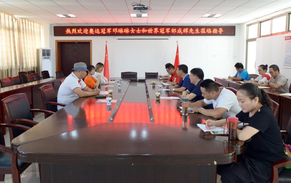 7月26日下午,体操奥运冠军邓琳琳、技巧世界冠军邹成辉在安徽省啦啦操协会秘书长胡彩红等陪同下来我校考察交流。党委副书记、校长闵永新会见了邓琳琳一行;校党委常委、副校长汪时珍与邓琳琳一行进行座谈交流,英国正版365官方网站党政主要负责同志、部分专业教师参加座谈。
