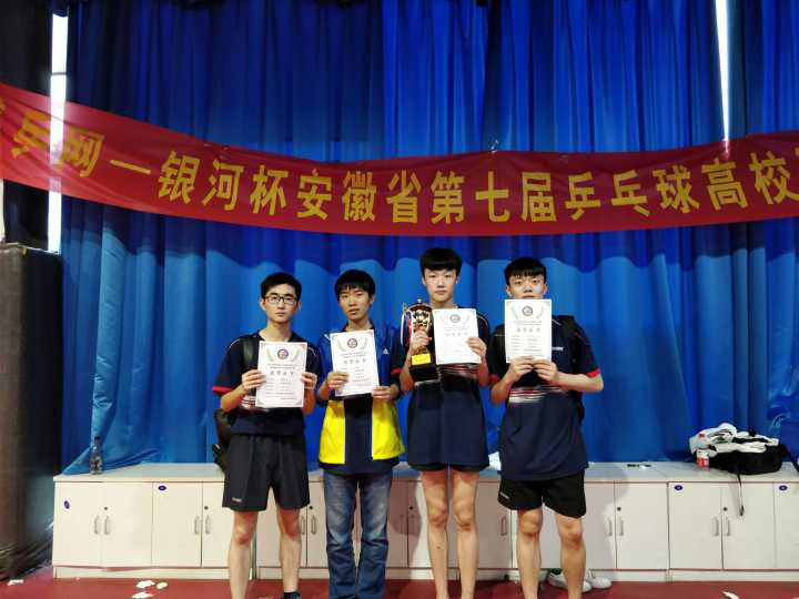 我校男子乒乓球队在2018年安徽省第七届高校超级杯乒乓球比赛中获得男子团体冠军