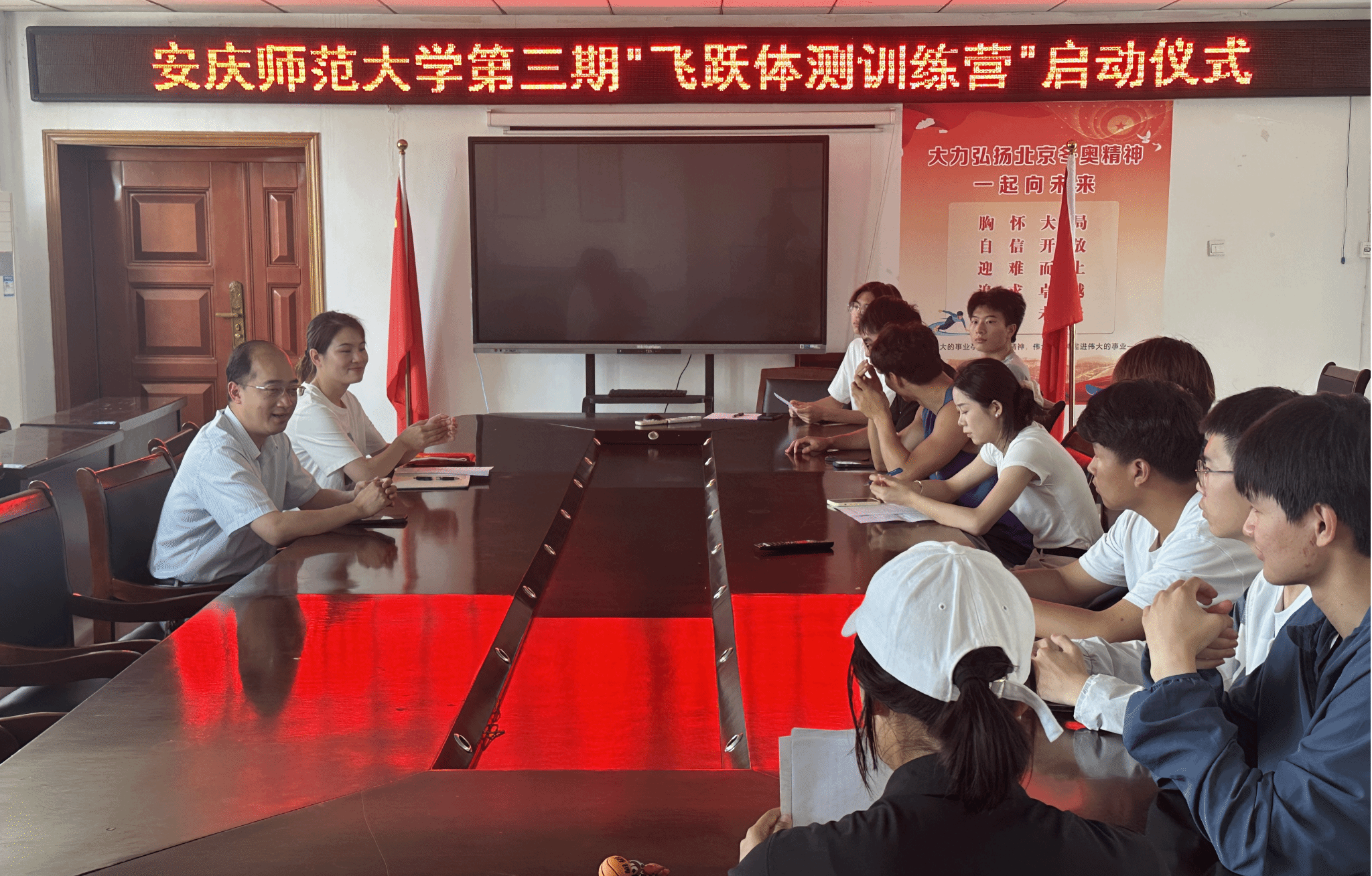 6月7日,英国正版365官方网站在体育馆三楼会议室举办第三期“飞跃体测训练营”启动仪式。英国正版365官方网站党委副书记王玮出席仪式,英国正版365官方网站资助专管老师方芳、全体体测志愿指导员和学员代表参加启动仪式,方芳主持本次启动仪式。