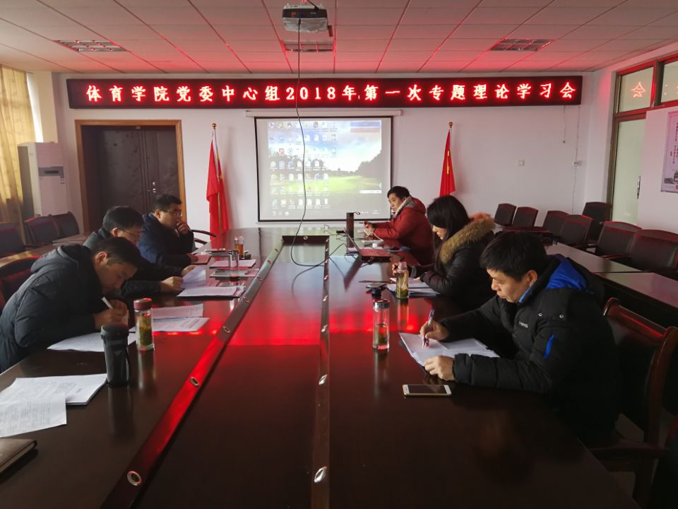 戴书记带领大家学习了毛主席的《矛盾论》、《实践论》和《党委会的工作方法》等党的经典理论著作,分享了学习十九大精神的心得体会,重点讲解了“六个聚焦”、“八个明确”和“十四个坚持”的重大创新思想创新观点。戴书记强调,中心组要加强学习,保证学习时间的同时要尝试读原著学原文悟原理,把学习的效果运用到实际工作中去,领导班子成员要时刻把握新形势下怎么看、怎么干的问题,真抓实干,把体院工作推上新的台阶。院党委副书记周多奇还带领大家学习了习近平总书记在中共中央政治局民主生活会上的重要讲话精神。与会同志纷纷表示,对党的新的理论知识学的还不够深入,与组织的要求还有不少差距,在以后的工作中要加强理论学习和理论联系实际的能力,力争为学院发展多做贡献。