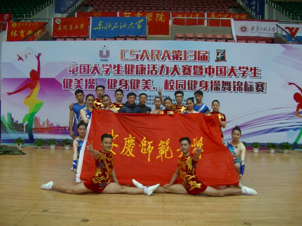 本次大赛在浙江省淳安县体育馆举行,参赛单位有来自北京大学、北师范大学、武汉英国正版365官方网站、西安英国正版365官方网站等全国各级各类共计172所高校,比赛设24个组别303个项目,参赛运动员近2000人,本次比赛共设置了健美操、健身健美、校园健身操舞三个大项,我校学生仅参加了健美操项目的比赛,能够获得上述殊荣,贵在学校领导的统筹、学院领导的主抓及专项教师的主教、常训。今后,我们将刻苦训练、砥砺奋进,争取为学校再次争光添彩。(吴海鸥)