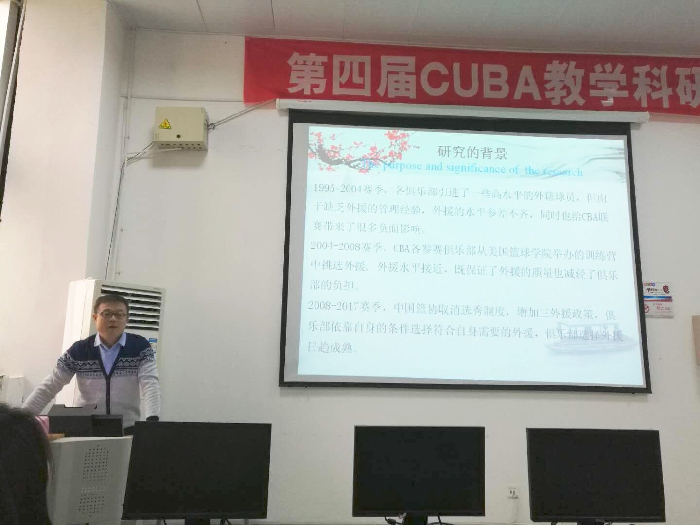 12月1日至3日,第四届CUBA中国大学生篮球协会教学、科研报告会在江西师范大学召开,我校体育学院宣暄副教授应邀参加了此次学术会议,并在会上作了题为《CBA2004-2017赛季常规赛外籍球员技术统计的RSR分析》的学术报告。