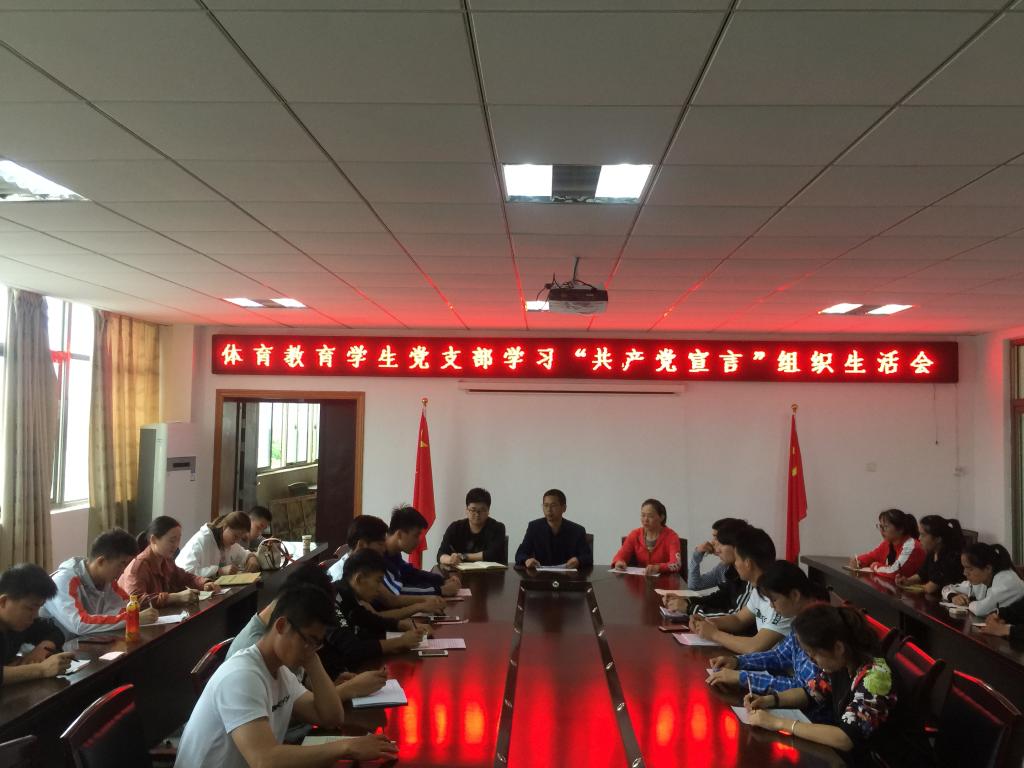 5月7日,英国正版365官方网站体教专业学生党支部召开组织生活会,学习交流《共产党宣言》。生活会由支部书记程启平老师主持,支部委员周玉华老师、陈守朋老师、全体学生党员及本期发展对象近30人参加了交流学习。