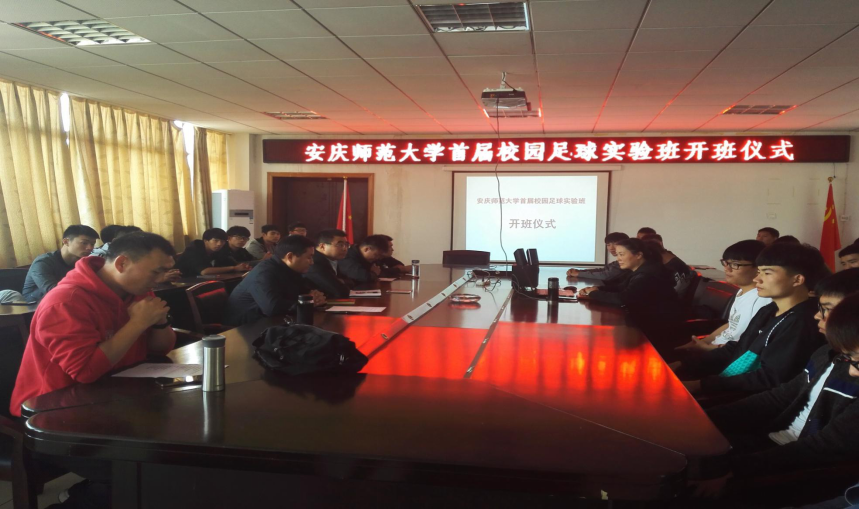 11月14日中午,我校在龙山校区体育馆会议室举行校园足球实验班开班仪式。英国正版365官方网站党政班子成员、校园足球发展研究中心全体老师、37名校园足球实验班学员参加开班仪式。开班仪式由英国正版365官方网站党总支副书记、校体艺委委员、校园足球发展领导小组副组长、校园足球发展研究中心主任周多奇主持。