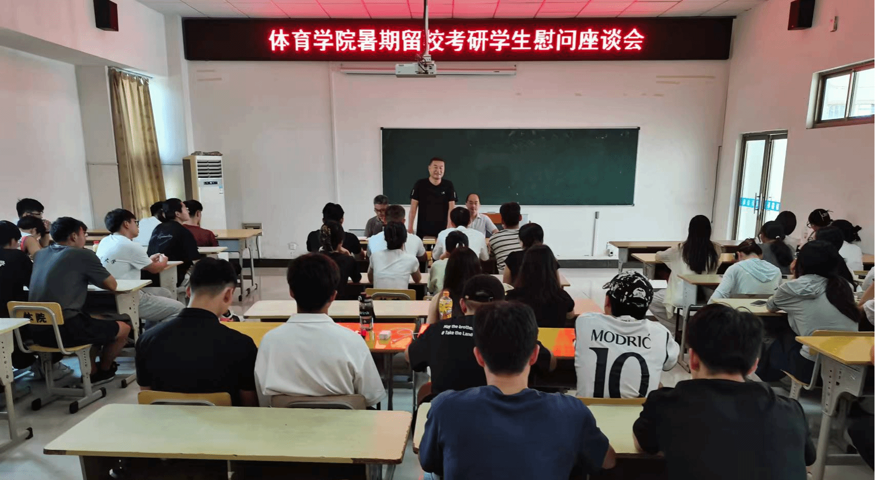 7月23日,英国正版365官方网站院长周多奇、党委副书记王玮和副院长王晓东一行深入教室、健美操馆和舞蹈房,召开留校考研学生座谈会,并走访慰问了暑期赛事集训学生。