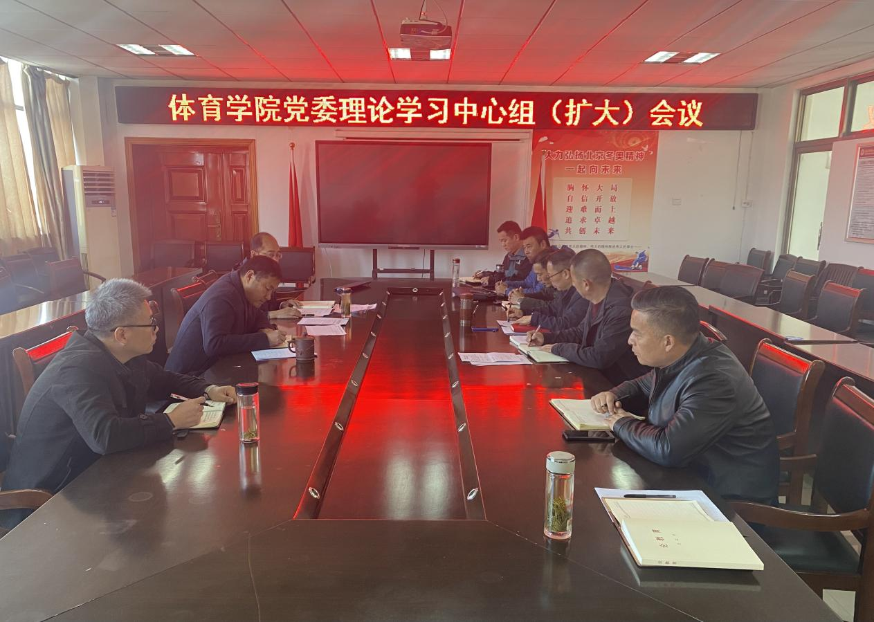 11月27日,英国正版365官方网站党委在体育馆三楼会议室召开党委理论学习中心组(扩大)会议,专题学习习近平同志《论教育》。会议由英国正版365官方网站党委书记王玮主持,学院党委委员、党委秘书、组织员、各党支部书记、教研室主任参加会议。