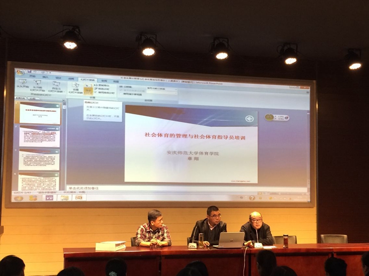 11月19日上午,由安徽省体育局社会体育指导中心主办,我院承办的第三期安徽省一级社会体育指导员培训班开班典礼在教师教育中心学术报告厅隆重举行,来自安庆市教体局群体科、学院相关负责人和全校200多名教师与学生及安庆市80余名社会体育技能指导服务人员参加了培训。