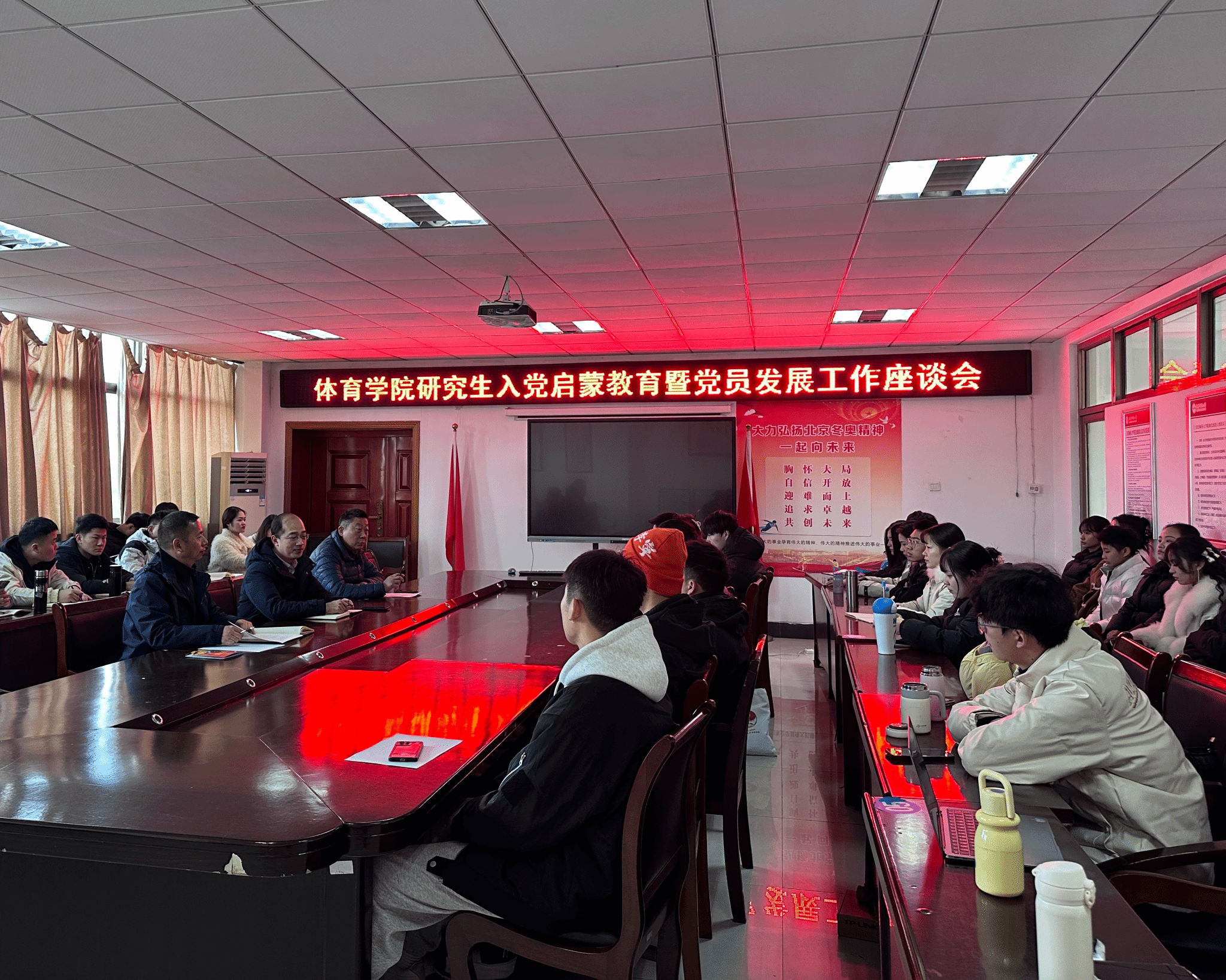 近日,英国正版365官方网站举办了研究生入党启蒙教育暨党员发展工作座谈会,针对近期研究生同学关注的申请入党的程序、要求等内容进行培训、座谈。体育学院党委书记王玮、党委秘书邓龙、研究生辅导员程启平出席了座谈会,2023级、2024级全体研究生参加了座谈会。