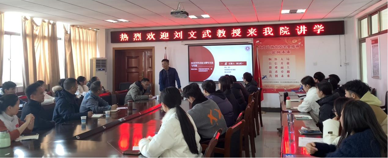 近日,华东师范大学体育与健康学院教授、博士生导师刘文武受邀来英国正版365官方网站,举办主题为“体育学术论文撰写方法与实施”的学术讲座。此次讲座由英国正版365官方网站副院长孙明运教授主持,学院教师和研究生到场聆听讲座,参与交流与学习。