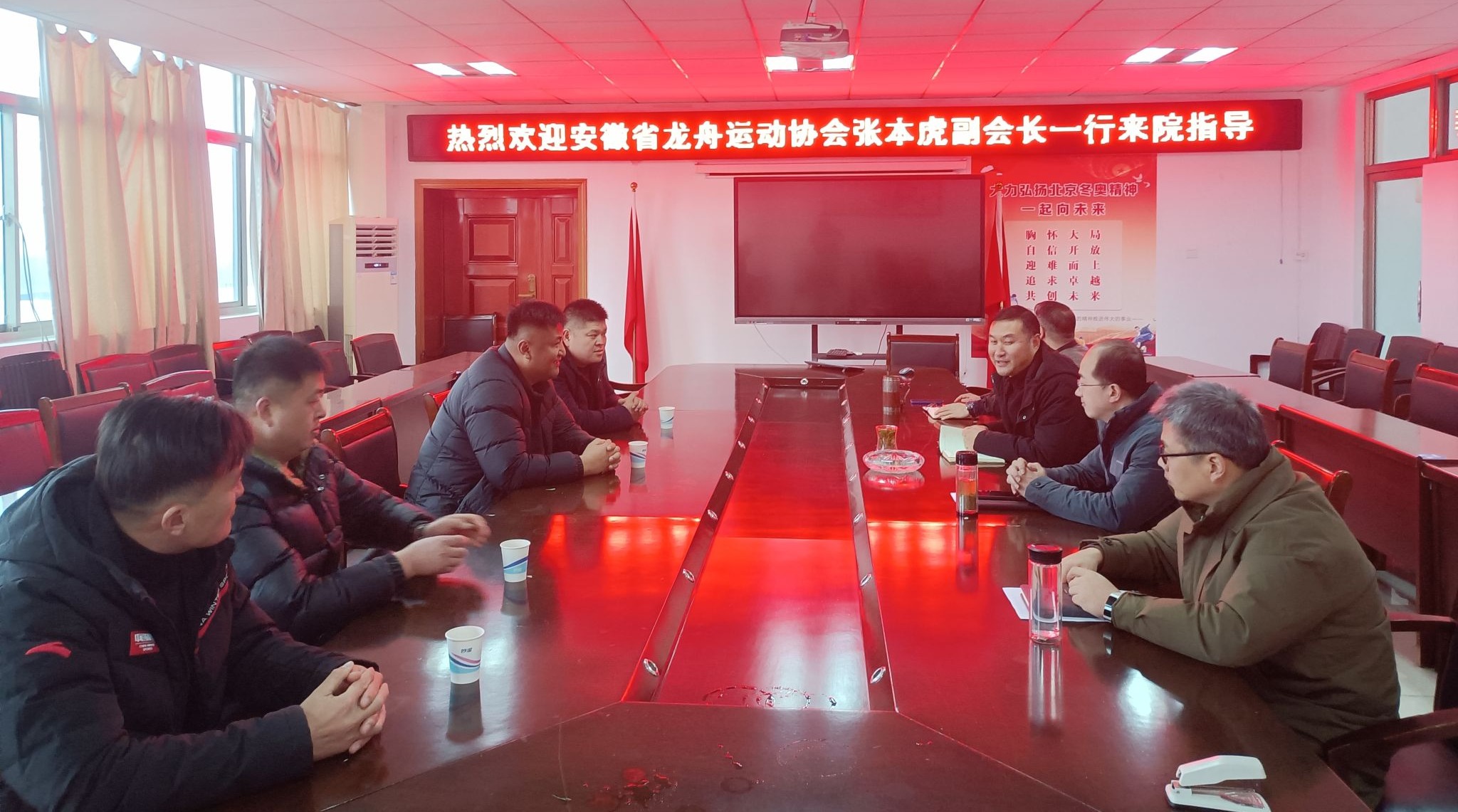 2月14日上午,安徽省龙舟运动协会副会长张本虎一行来到英国正版365官方网站调研并洽谈龙舟赛事工作。英国正版365官方网站党政领导班子、教研室主任参与座谈并陪同调研。