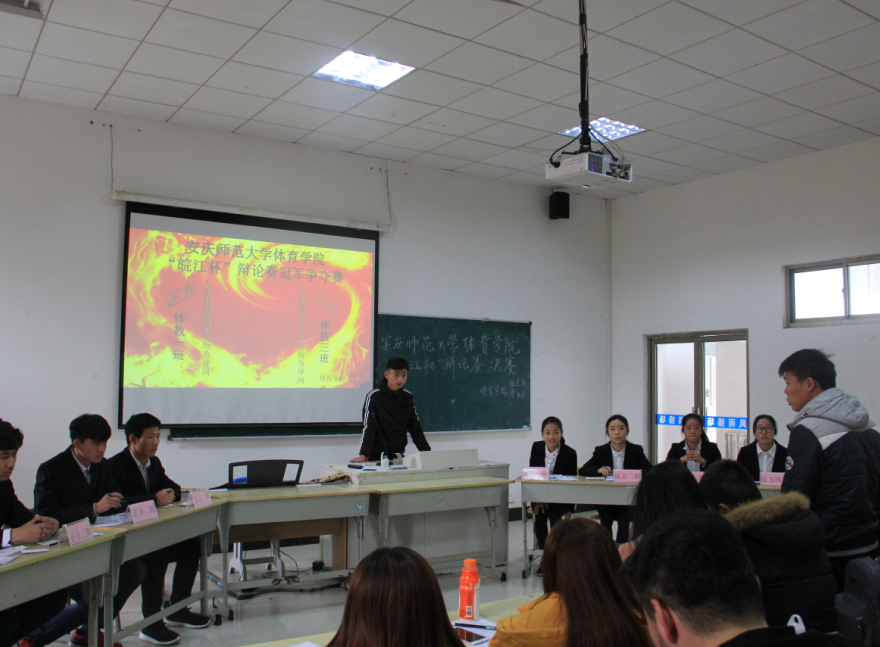 为了进一步丰富校园文化的建设,加强学生的思想道德引领,提高我院学生的综合素质,培养同学们的创新思维能力,发掘体院优秀的辩论人才,也为了给大家一个展现自我的舞台,由院团总支学生会主办,学生会学习新闻部和外联部协办的2016英国正版365官方网站“皖江杯”辩论赛的决赛于12月19日中午,在体育馆多媒体教室如期举行。比赛由学生会主席团及各部门部长担任评委嘉宾。