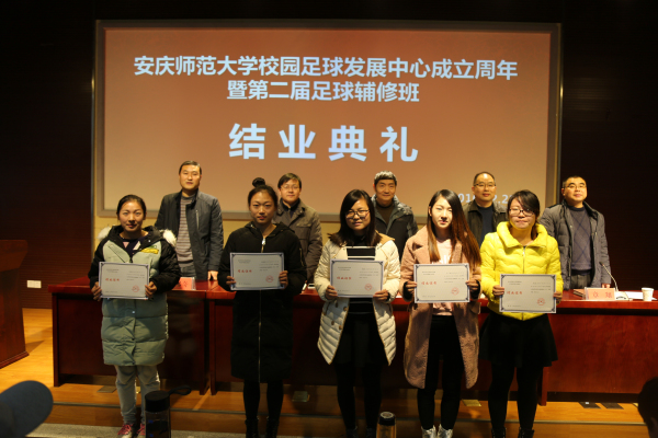 张群颁发结业证书并致辞。他充分肯定了校园足球发展研究中心一年来的各项工作,强调了学校举办足球辅修班的重要意义,并代表学校向精心筹备足球辅修班培训的各位老师及各位辅导员表示诚挚的谢意,向顺利结业的各位参训同学表示热烈的祝贺!他指出,校园足球的一个重要目标是推进体育教学的改革,进一步彰显体育在培养学生全面素质中所起到的基础性作用;希望校园足球发展中心的老师围绕校园足球的兴趣培养、校本课程、校园足球文化等方面开拓新思路、取得新进展、积累好经验,力争做到以球育德、以球益智、以球健体;希望全体参训同学一定要珍惜此次学习机会,将培训班的学习成果运用到今后的学习中去,将校园足球“玩中受益,乐中成长”的理念贯穿始终,从挫折中锻炼自己的心智、能力,在足球中寻找乐趣,收获成长。