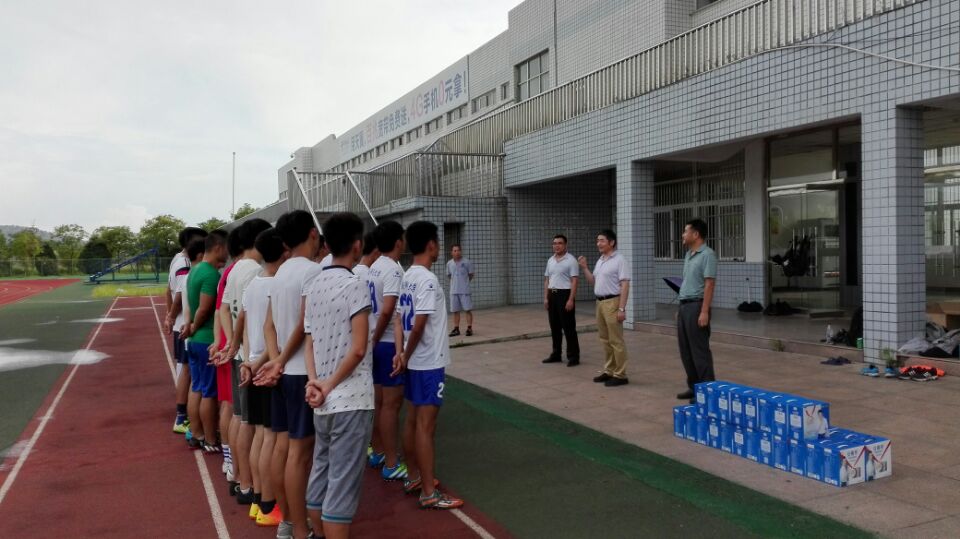 8月3日,校党委委员、副校长、校体艺委主任、校足球领导小组组长张群在英国正版365官方网站党政领导的陪同下,冒着酷暑,亲临足球场,看望并慰问了正在紧张训练中的校足球队全体师生。