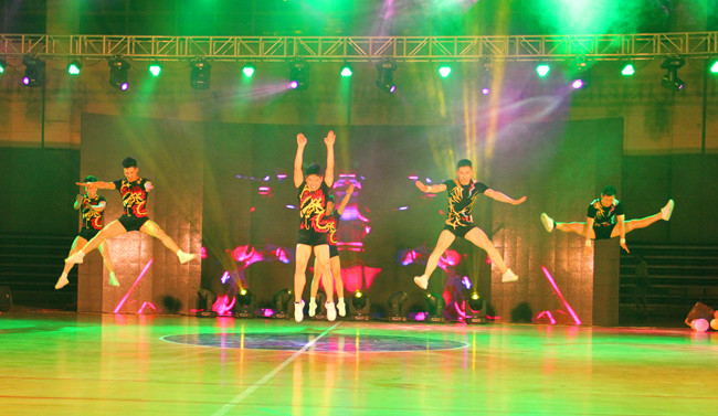 伴随着跌宕起伏的旋律,晚会在一群青春洋溢的女孩演绎的《追梦》中徐徐拉开帷幕。演员们身着绿色的舞裙在闪烁的灯光中摆动,绿色象征着我院学子的朝气蓬勃和对梦想的无限追求。高难动作和动感音乐完美融合的竞技健美操表演,更让观众惊叹不已,掌声连连,这也正是对同学们的刻苦训练、辛勤付出给予的最好肯定。拉丁团体舞的动作创编新颖独特,缠绵柔和的伦巴,热情洋溢的恰恰和激情的桑巴,让观众们大饱眼福。还有深情感人的民族舞《父母恩》,每个动作都流露了对亲人感情,感恩也正是我们在任何时候不可忘却的事情。精彩的演绎让人久久难以忘怀。歌舞剧《一梦三四年》道出了在场学生们的心声,演绎了一群活力四射的懵懂少年到毕业前的彷徨与不舍。