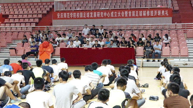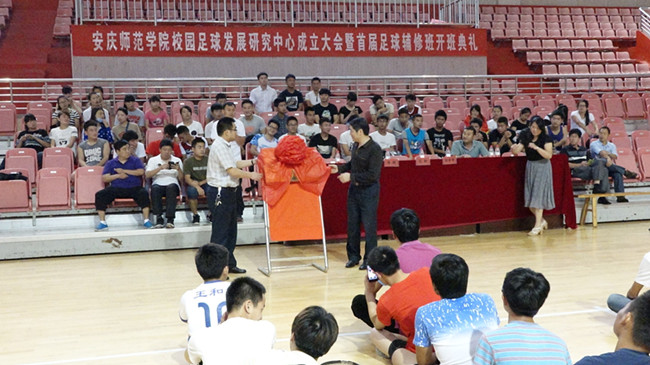 张群副校长为安庆师范学院足球发展研究中心揭牌,并作了动员讲话。他强调学校成立足球辅修班和足球发展研究中心,就是配合国家把足球发展上升为国家战略这一重大决策。他要求足球发展研究中心不但要深入挖掘校园足球的独特价值和巨大潜力,充分发挥足球运动在全面贯彻党的教育方针中的重要作用。同时也要针对足球发展过程中遇到的社会、经济等问题积极展开研究。另外他要求足球辅修班既要立足校园,遵循足球运动规律,加强足球师资力量培养,通过活动指导、主办比赛、宣扬足球文化等营造校园足球氛围,提升足球水平,同时又要立足未来,积极探索校地合作共同推进校园足球发展的新模式,最终为促进安徽足球乃至国家足球的发展作出应有的贡献。