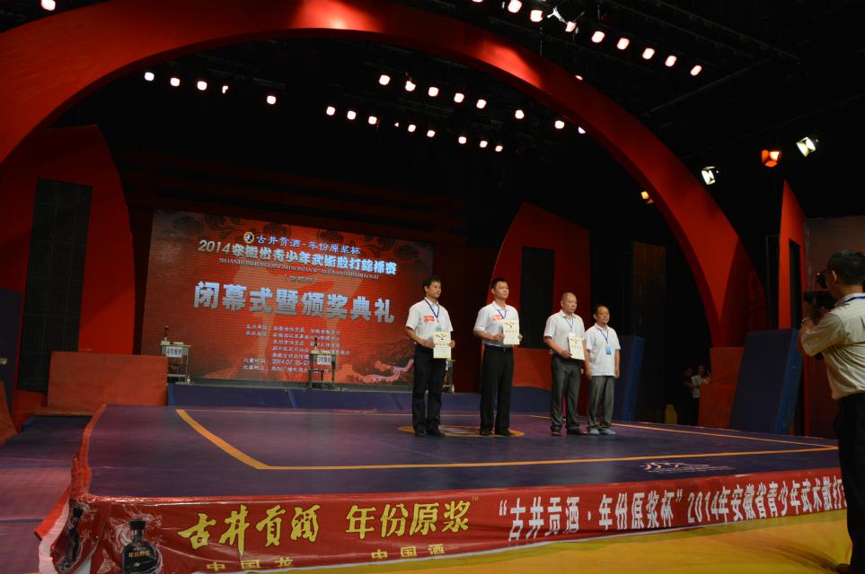2014年7月25日至27日,由安徽省体育局和安徽省教育厅主办,安徽省武术拳击运动管理中心和阜阳市体育局承办的“古井贡酒·年份原浆杯”2014年安徽省青少年武术散打锦标赛在阜阳市隆重举行,我院的王思乐老师不但应邀担任了本次大赛的裁判员,而且还凭着精湛的业务能力被大赛组委会评为“优秀裁判员”