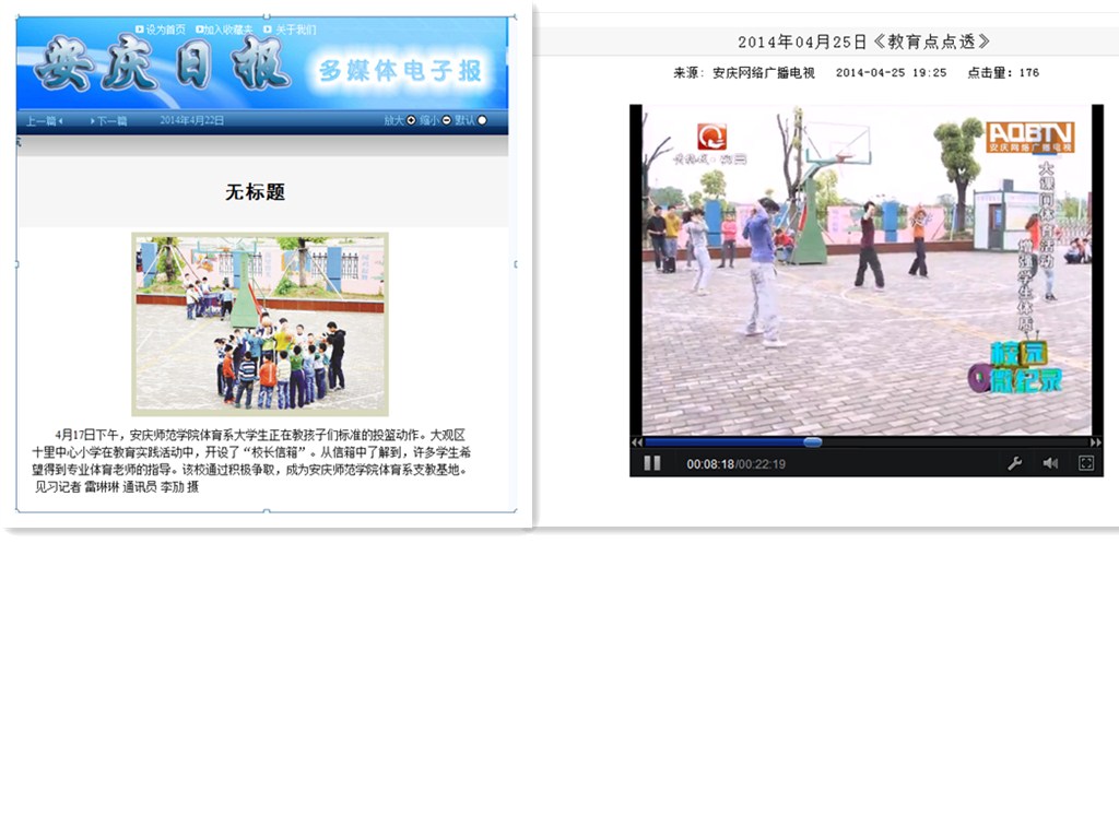 本次活动不仅为英国正版365官方网站学生教学提供了一个良好的平台,增强了我院学生的课堂教学能力;也让小学生们深刻感受到了体育活动的无限乐趣与魅力,让他们在学习期间得到了充分的体育锻炼,培养了小学生综合实践课程意识。此次活动受到了安庆市十里中心小学师生们的一致认可与肯定。同时本次活动在安庆日报以及安庆教育网均被宣传报道,也由安庆教育“安庆教育点点透”栏目全程录制报道。(张强)http://vod.aqbtv.cn/2014-04/25/cms248917article.shtml