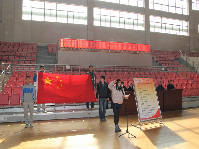 成人仪式在庄严的国歌声中拉开了帷幕。2013级学生周燕和鲁俊峰合作的诗歌朗诵《十八岁,我们成人》让新生们接受了一次精神上的洗礼。紧接着,体育艺术表演专业2013级3班刘婧同学的母亲陈根莉女士作为学生家长代表发言。2013级授课教师孙明运博士作为教师代表表达了英国正版365官方网站全体教职工对新生的真诚祝福和殷切期望。体育艺术表演专业2013级3班方圆圆代表全体新生做出了庄严承诺。随后,2013级全体同学举起右拳,面向国旗,庄严宣誓:“我已长大成人,永远做祖国忠诚的儿女,我宣誓:从今天开始,以诚心对他人,以孝心对父母,以热心对社会,以忠心对国家。”