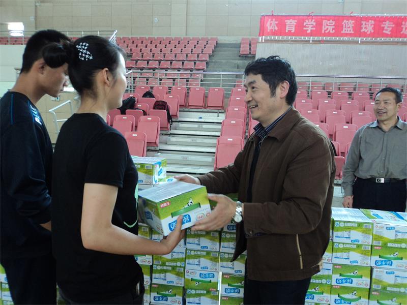 慰问前,张院长发表了重要讲话。张院长指出:安徽省运动会四年一届,比赛规格高,参赛规模大,是目前安徽省最高水平的体育盛会。全体教练员要以备战第十三届省运会为契机,动员并组织学生积极参加课外业余训练,切实提升学生的身心健康水平;全体运动员要认真训练,积极备战,在即将开始的比赛中展现出我校大学生良好的精神风貌,做到胜不骄、败不馁。他最后预祝各位运动员在本届省运会上取得佳绩,为校争光。动员讲话结束后,张院长还给全体教练员和运动员送上了牛奶等慰问品。