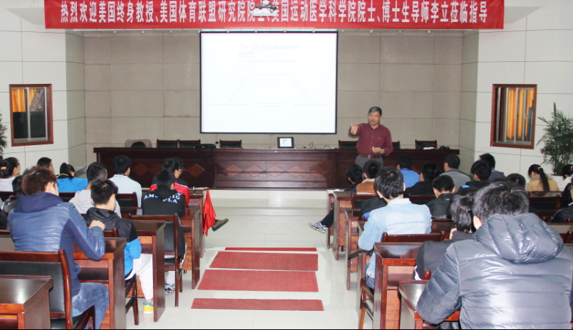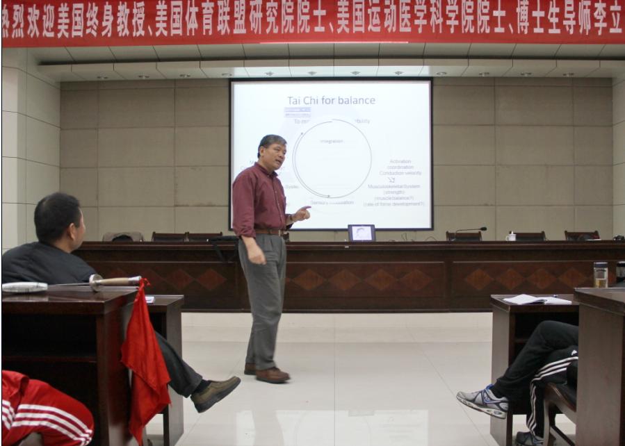 11月21日下午,美国佐治亚南方大学李立教授在行政楼一楼会议室做了题为“太极拳为什么能够改善老年人的平衡能力”的学术报告。英国正版365官方网站一百多位师生聆听了报告。