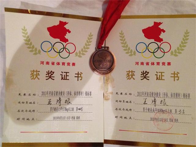9月12日至15日,由河南省人民政府主办,河南省体育局、河南省体育总会和郑州市人民政府承办的河南省健美健身(形体·体育模特)锦标赛在郑州市举行。我院2010级体育教育专业学生王清振经过激烈竞争,最终在男子成年组80kg以上级比赛中荣获季军;在男子大学生组70kg以上级比赛中荣获第四名。