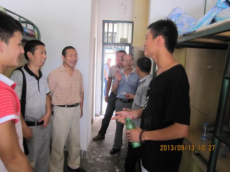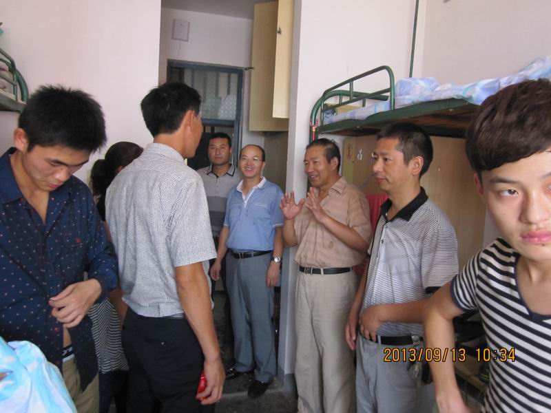 为践行党的群众路线教育实践活动,9月13日上午,英国正版365官方网站党总支书记吴毅安,副书记韦长发,副院长章翔、周多奇在辅导员老师程启平的陪同下,带着对2013级新生的牵挂,先后来到新生入学报到点以及女生4号楼和男生6号楼新生宿舍,深入了解学院2013级新同学的生活和思想状况,并向他们表示热烈的欢迎和诚挚的问候。