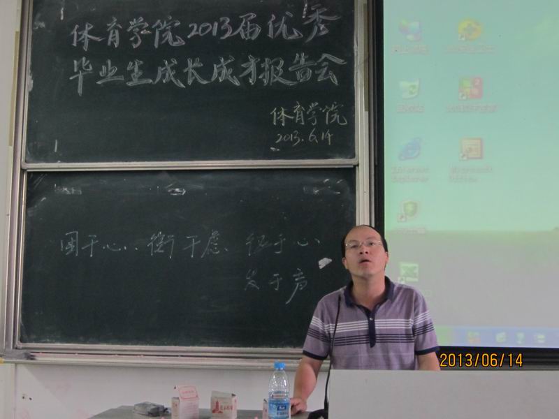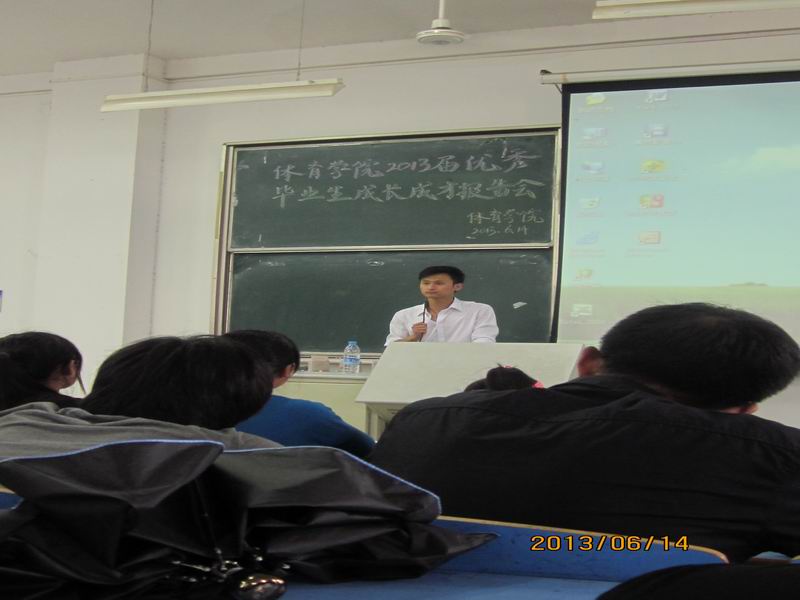报告会上,已考取北京体育大学硕士研究生的王力、杨淑敏,考取安徽师范大学硕士研究生并在合肥创办自己的教育培训机构的王军,在池州市东至县创立跆拳道会馆的余朝阳,在宁国市三津中学签约就业的许洋洋等五位优秀毕业生结合各自的学习、工作及创业经验做了精彩的报告。他们真实而又生动地再现了自身大学四年的成长经历,叙述了他们发愤图强,矢志不渝,在实现自己的人生理想、人生价值的道路上付出的艰辛努力。他们或质朴诚恳、或幽默诙谐、或情感真挚,以亲身经验告诫广大同学应树立目标,时刻保持一种积极的心态,养成良好的学习生活习惯。他们用自己的行动向大家展示了当代大学生应有的品质,展示着大学生活应有的精神面貌和青春生活。报告会历时两个多小时,不时赢得在场全体同学的雷鸣般掌声。