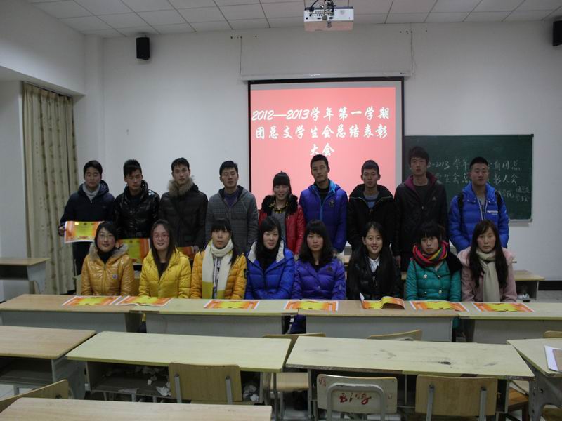 1月10日下午,英国正版365官方网站团总支学生会在体育馆多媒体教室召开2012—2013学年第一学期团学工作总结表彰大会。院团总支副书记、学生工作办公室副主任鲁雷,团总支汪洋老师出席会议,院学生会全体成员与各班级团干参加了大会。会议由院学生会主席丁立同学主持。
