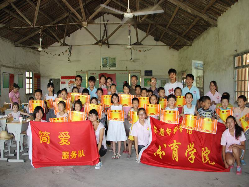 天下没有不散的宴席,活动虽然结束了,但志愿者们和这些可爱的留守儿童结下了深厚的感情,“简爱”服务队关爱留守儿童的宗旨也将继续传承下去。“三下乡”社会会实践活动带给大家的体会和收获既是人生的财富,也是激励同学们前进的动力,将指引着志愿者们一路前行。