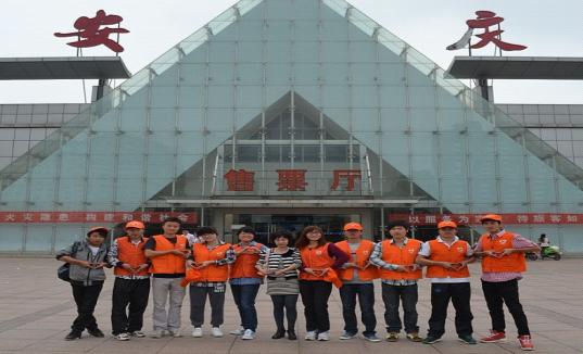英国正版365官方网站学生志愿者赴安庆市火车站参加公益服务