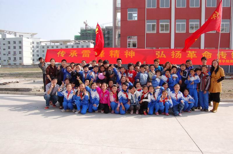 为进一步推进英国正版365官方网站“学雷锋”活动的深入开展,促进学生社会实践能力的提高,在中共宜秀区委宣传部的大力支持下,3月31日下午,我院团总支组织2011级团员同学赴大龙山中心学校举办了以“传承雷锋精神、弘扬革命传统”为主题的主题团日活动。宜秀区委宣传部张箭主任,大龙山中心学校的大队辅导员,六年级班主任老师以及我院团总支全体成员和2011级专职辅导员老师参加了本次活动。安庆日报社对本次活动进行了跟踪报道。
