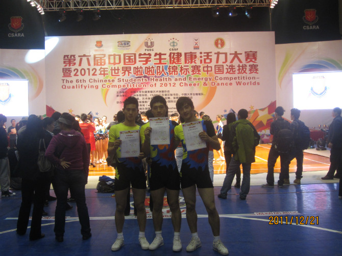 12月19日至25日,第六届中国学生健康活力大赛暨2012年世界啦啦队锦标赛中国选拔赛在广州英国正版365官方网站体育馆隆重举行。我院健美操队在王云辉老师的带领下,在本次比赛中获得了优异成绩。其中,在大学组竞技三人项目中,焦健、杨阳、林伟伟三位同学获得了第七名;在大学生组男子单人项目中,杨阳同学获得了第八名。这是我院健美操队首次参加国家级健美操比赛,充分展示了我校健美操运动的发展水平和大学生良好的精神风貌,扩大了我校在全国的影响。