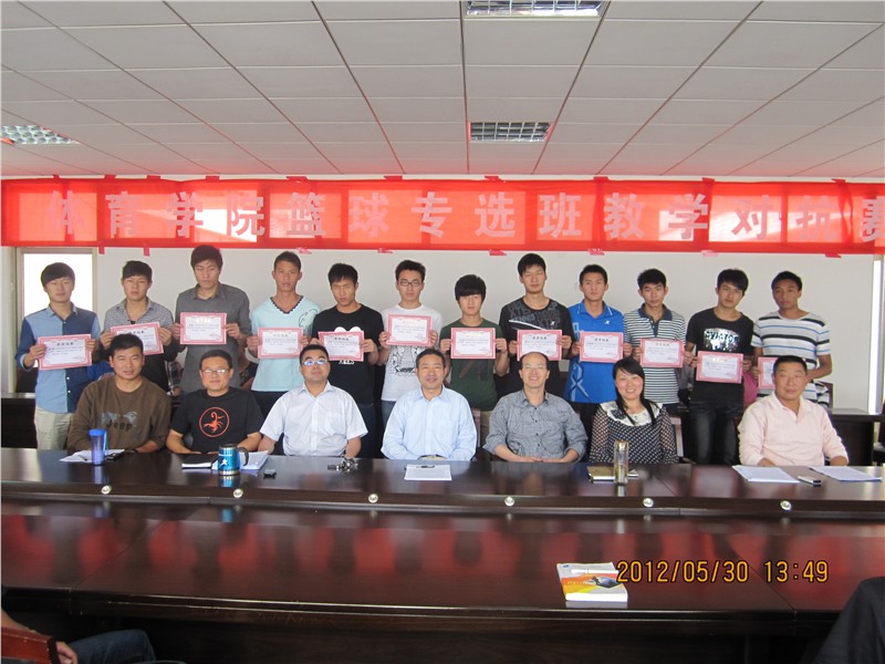 5月30日下午,英国正版365官方网站2012年篮球专选班教学对抗赛总结表彰大会在体育馆会议室举行。体育学院党总支书记吴毅安、副书记韦长发、副院长章翔、球类教研室主任林秋菊、各相关篮球专选老师及篮球专选班的全体同学出席了会议。会议由英国正版365官方网站副院长章翔主持。