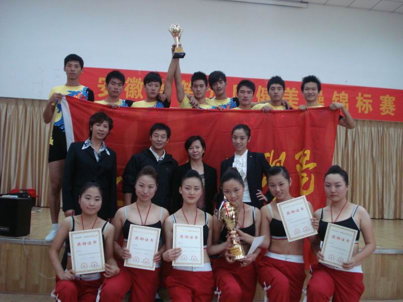 10月22日—23日,由省体育局主办、省健美操协会承办的安徽省第九届健美操锦标赛在省体育运动职业技术学院隆重举行。我校英国正版365官方网站运动健儿在王云辉老师的带领下,经过精心准备和顽强拼搏,在本次比赛中获得了三金两银的优异成绩。其中杨阳同学获得男子单人项目竞技组第一名,焦健、杨阳、林伟伟同学获得三人项目竞技组第一名,吴鹏程、陈建健,赵浩杰、丁立、方锡球、林伟伟同学获得集体六人项目竞技组第一名,李皖、高莹莹、汪令娟同学获得三人项目大众组第二名,吴梦雯、董敏俊、华云菲、李皖、高莹莹、汪令娟同学获得集体六人项目大众组第二名。这是我校连续四年在安徽省健美操锦标赛中取得的骄人战绩。