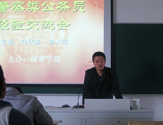 4月13日下午,体育馆多媒体教室内座无虚席,英国正版365官方网站2006届校友、安庆市特警支队警官叶扶苏和2008届校友、安庆市高速交警支队警官李兴华应邀回校,为我院广大同学做精彩的成长成才报告。学院党总支副书记韦长发出席报告会并做总结讲话。报告会由学院专职辅导员、就业秘书沈春华老师主持。