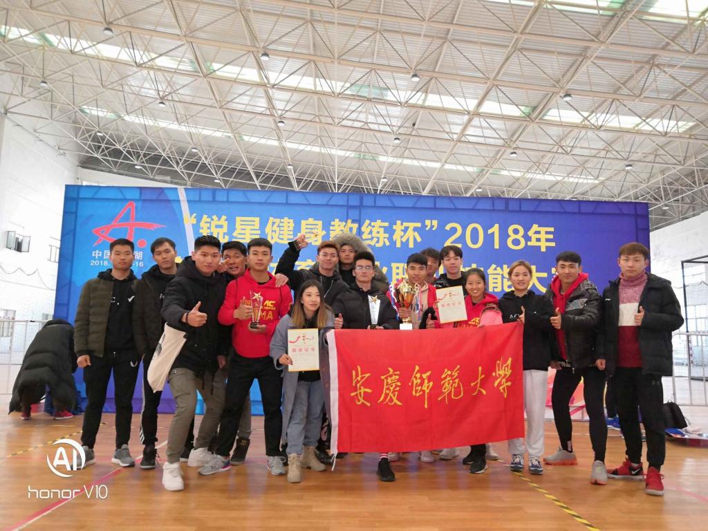 12月14-16日, 2018年安徽省体育行业职业技能大赛在安徽师范大学举行。我校代表队在领队章翔院长、教练员吴海鸥老师的带领下,经过激烈比拼,程建伟、郑强、张光兵同学获得团体三等奖、高健同学获得个人一等奖。