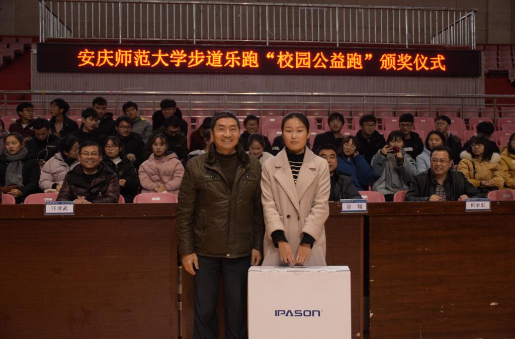 12月26日下午,安庆师范大学步道乐跑“校园公益跑”颁奖仪式在龙山校区篮球馆举行。校党委常委、副校长张群出席颁奖仪式并为获奖学生代表颁发奖品。英国正版365官方网站、学生处、化学化工学院等相关单位负责人、教师代表,150余名学生参加了颁奖仪式。