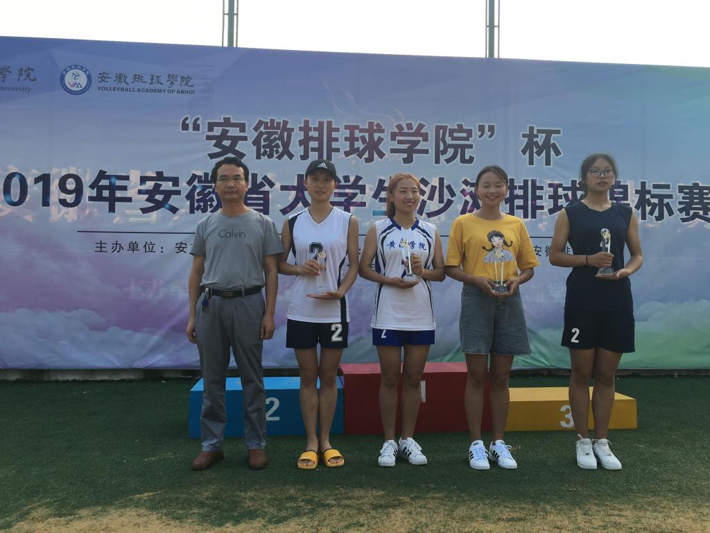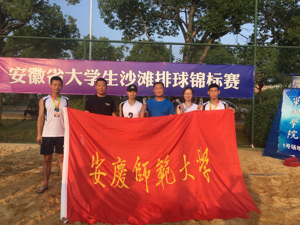 7月9日—15日, 安徽省第二届大学生沙滩排球锦标赛在巢湖学院举行。我校沙滩排球队在领队林秋菊副院长,教练员邓龙、牛云飞老师带领下,经过激烈角逐,荣获男子丙组二等奖(第三名)、女子丙组二等奖(第四名)和女子丙组“体育道德风尚奖”。