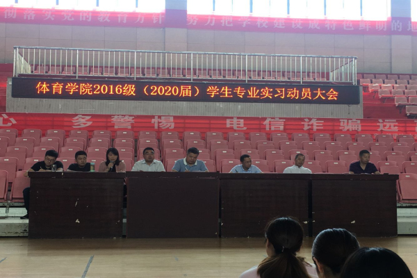 9月19日中午,英国正版365官方网站召开2016级体育表演专业、休闲体育专业实习动员大会,学院党政领导、实习指导老师、辅导员老师、全体实习生参加会议。会议由英国正版365官方网站党委书记王开友主持。