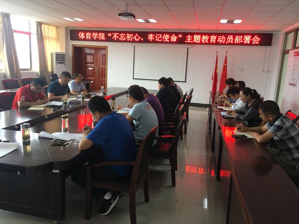 9月24日,英国正版365官方网站在体育馆会议室召开“不忘初心、牢记使命”主题教育动员部署会。学院党委书记王开友作动员讲话,对全院开展主题教育进行动员部署。学院院长章翔、党委副书记高栋梁、各党支部书记、全体辅导员及相关行政人员参加会议。会议由院长章翔主持。