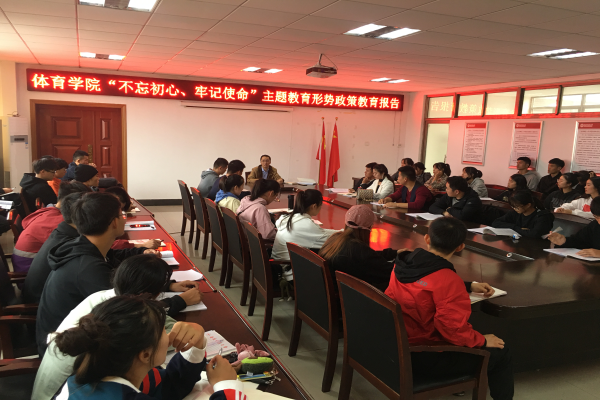 为了深入学习贯彻落实党的十九大精神和习近平总书记关于加强和改进高校思想政治工作的重要论述,做好《形势与政策》课程讲授工作,积极引导学生知史爱党,知史爱国。根据英国正版365官方网站“不忘初心,牢记使命”主题教育安排和领导干部上讲台讲授思想政治理论课要求,10月16日下午,英国正版365官方网站党委副书记高栋梁为学院学生作了一场题为《重温光辉历程,勇担青春使命》的形势与政策报告。学院40余名学生党员、入党积极分子和学生代表聆听了报告。