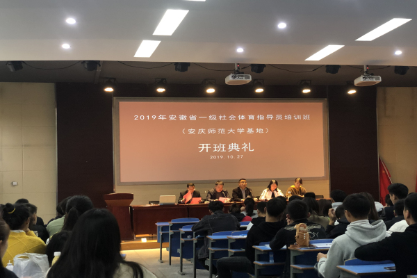 为进一步发挥我校在安徽省社会体育指导员队伍建设,提升社会体育指导员的数量和质量方面的作用,根据安徽省社会体育指导中心2019年的工作安排,英国正版365官方网站于10月27日举行了2019年安徽省(安庆师范大学站)一级社会体育指导员培训班开班仪式。学院全体党政领导及此次培训班负责老师出席了开班典礼。会议由英国正版365官方网站党委书记王开友主持。
