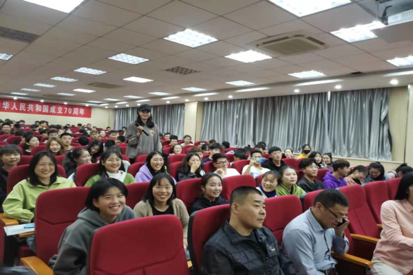 讲座过程中,朱教授还向同学们介绍了自己的专著及正在撰写的《王步文传》、《口述历史》等等,在座的各位同学也都饶有兴致地一起分享他的最新学术成果,从中获益匪浅。讲座接近尾声,大家都非常踊跃地发言提问,2019级体育教育专业班曹雨鑫、徐志、孙刘贝、陈晓龙等四位同学们先后提问交流,朱洪教授都一一作了详细回答。来自胡适家乡的的郑鸿喜同学说:“本期大讲堂使自己享受了一顿丰盛的精神大餐,极大地丰富了自己的课余读书生活,相信这会成为我们记忆里珍贵的一部分,使自己的大学生活增加了一道亮丽的风景线。”