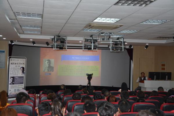 14点05分,原皖江文化研究中心主任朱洪教授在掌声中走上讲台,他本次演讲的题目是“胡适的青年时代”。朱教授的讲座贯穿胡适的出生、母亲对童年胡适的谆谆教诲、青年时期胡适赴美国求学经历、再到胡适对中国文化的贡献,朱教授讲学整个过程思路清晰,语言诙谐,同学们专心听讲,现场时而寂静无声、时而欢声笑语!