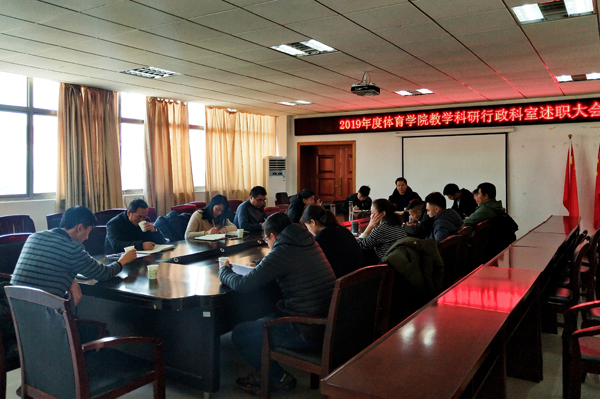 会上,11位科室负责同志结合自身的岗位职责,围绕专业建设、公共体育教学改革、教研室工作、科研工作、实验室工作、行政管理协调、场馆管理等方面进行述职汇报,较为全面地梳理了一年来各科室及教研室的工作思路、取得的工作成效、存在的问题和不足以及2020年的工作计划。(陈骏  审核/林秋菊)