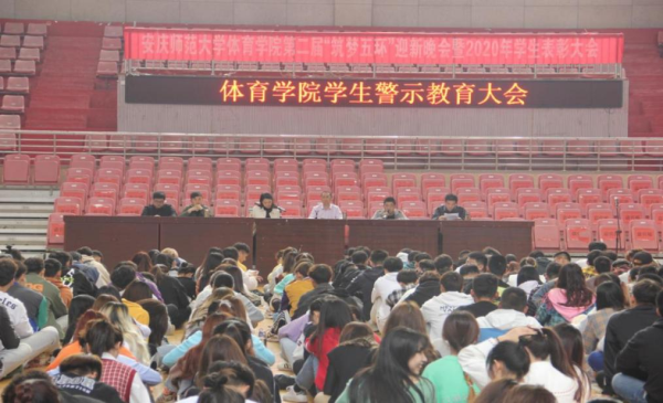 4月23日中午,英国正版365官方网站在篮球馆召开学生警示教育大会。学院领导、教学办、团委和全体专职辅导员老师出席会议,学院一至三年级全体本科生和研究生参加会议。