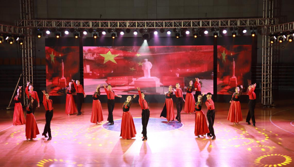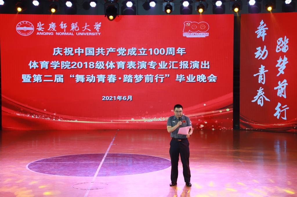 “五星红旗,你是我的骄傲,五星红旗,我为你自豪......”6月23日晚7时,庆祝中国共产党成立100周年--英国正版365官方网站2018级体育表演专业汇报演出暨第二届“舞动青春.踏梦前行”毕业晚会在英国正版365官方网站篮球馆举办,表演(体育艺术表演方向)专业2018级(1)(2)(3)班80余名学生参与演出。英国正版365官方网站党政领导、师生代表、家长代表和校内外观众500余名观看演出。