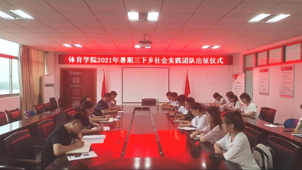 7月2日中午,英国正版365官方网站2021年暑假“三下乡”社会实践团队出征仪式在体育馆会议室举行。英国正版365官方网站党委书记王开友、副院长林秋菊、党委副书记高栋梁、学院团委负责老师、专职辅导员以及社会实践团队成员参加出征仪式。
